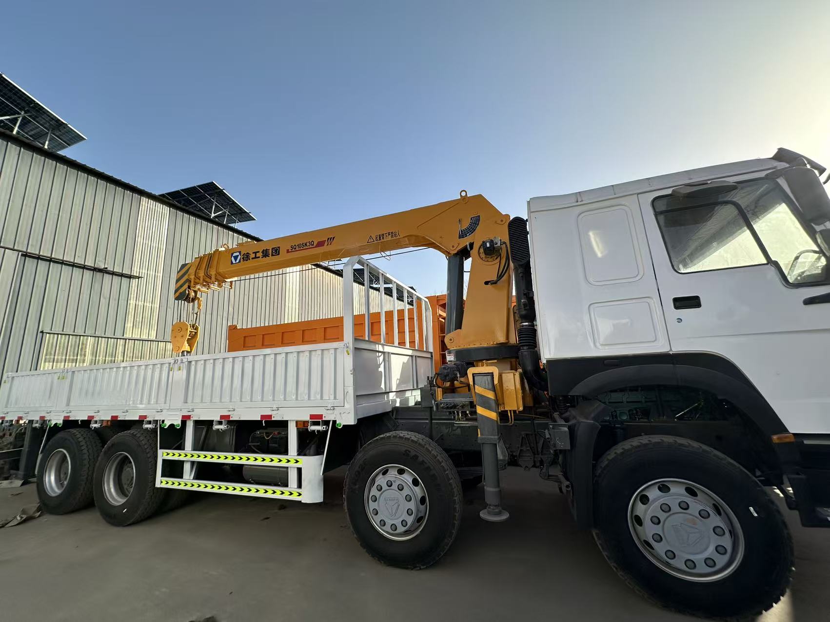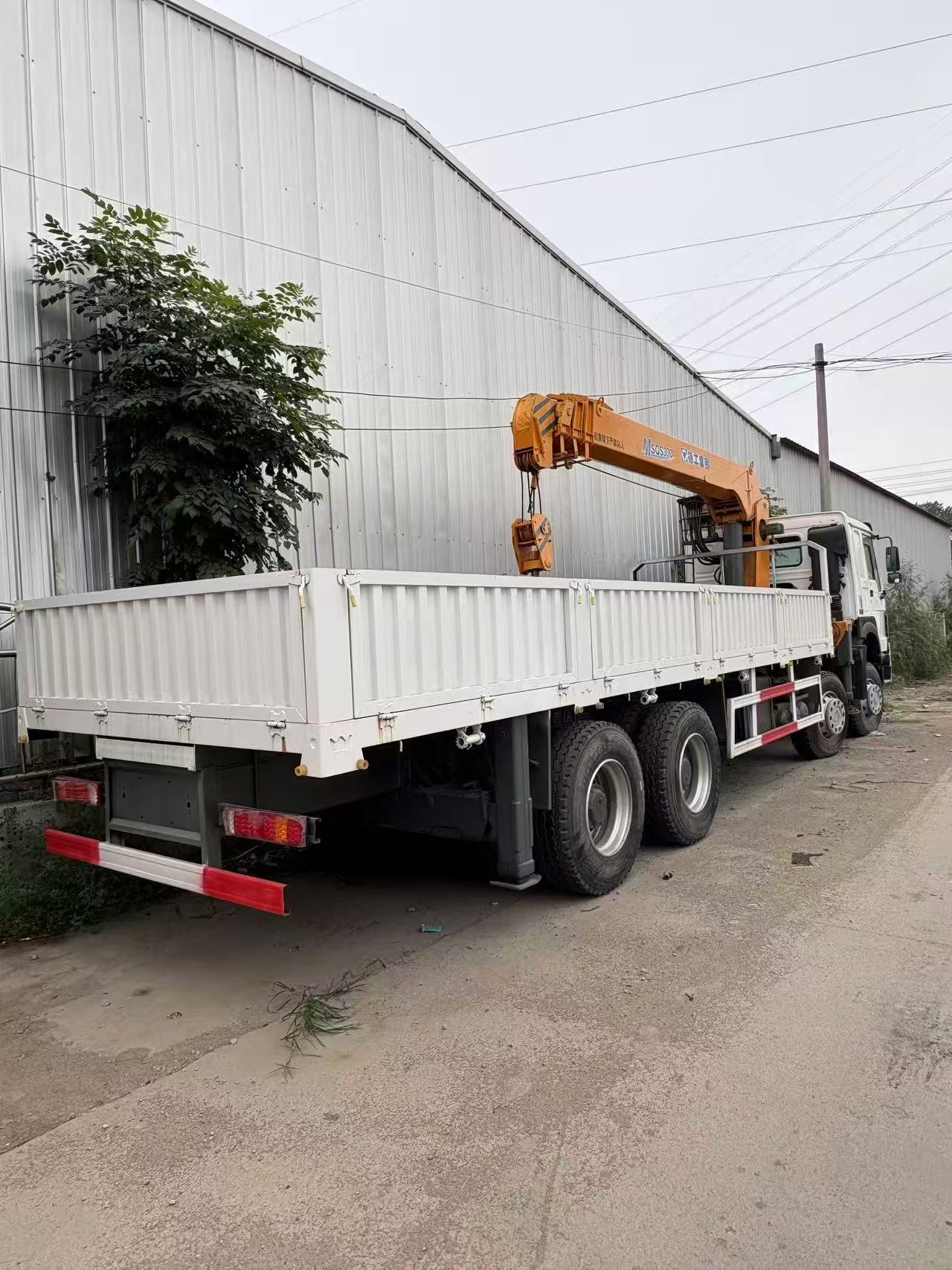 它基于重汽豪沃6×4底盘打造,配备折叠臂起重机(通常起吊能力10-20吨),货箱为平板式设计,同时具备“运输 吊装”双重功能,主要用于工程设备转运、建材装卸、城市基建物资吊装运输等场景,也常见于物流、救援等