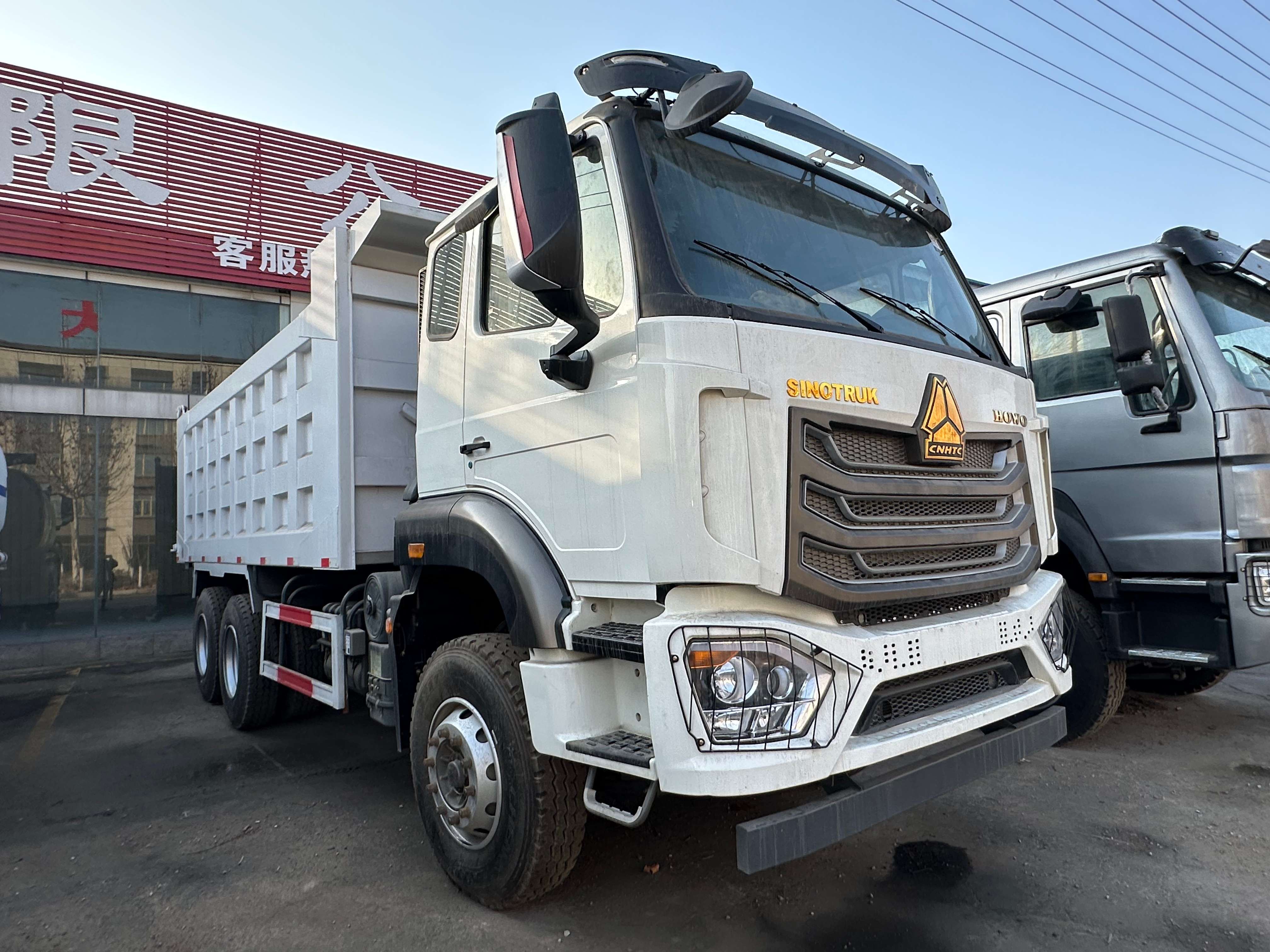 这是中国重汽(SINOTRUK)豪沃系列重型自卸卡车,属于工程运输专用车辆,核心信息如下:1. 车辆特征◦ 采用重汽豪沃的重型卡车底盘,白色驾驶室搭配同色系后翻货斗,车头格栅处有“SINOTRUK”标识和重汽三角标,辨