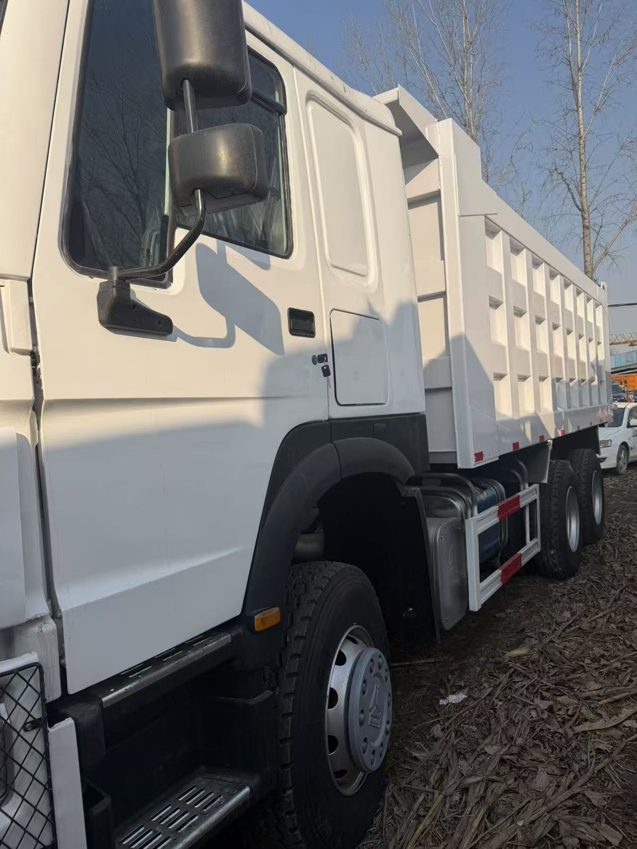 ◦ 车头有金色的“SINOTRUK”(中国重汽)英文标识,以及“371”型号数字,代表该车型的动力配置为371马力,是重汽经典的大马力重型卡车动力标定。