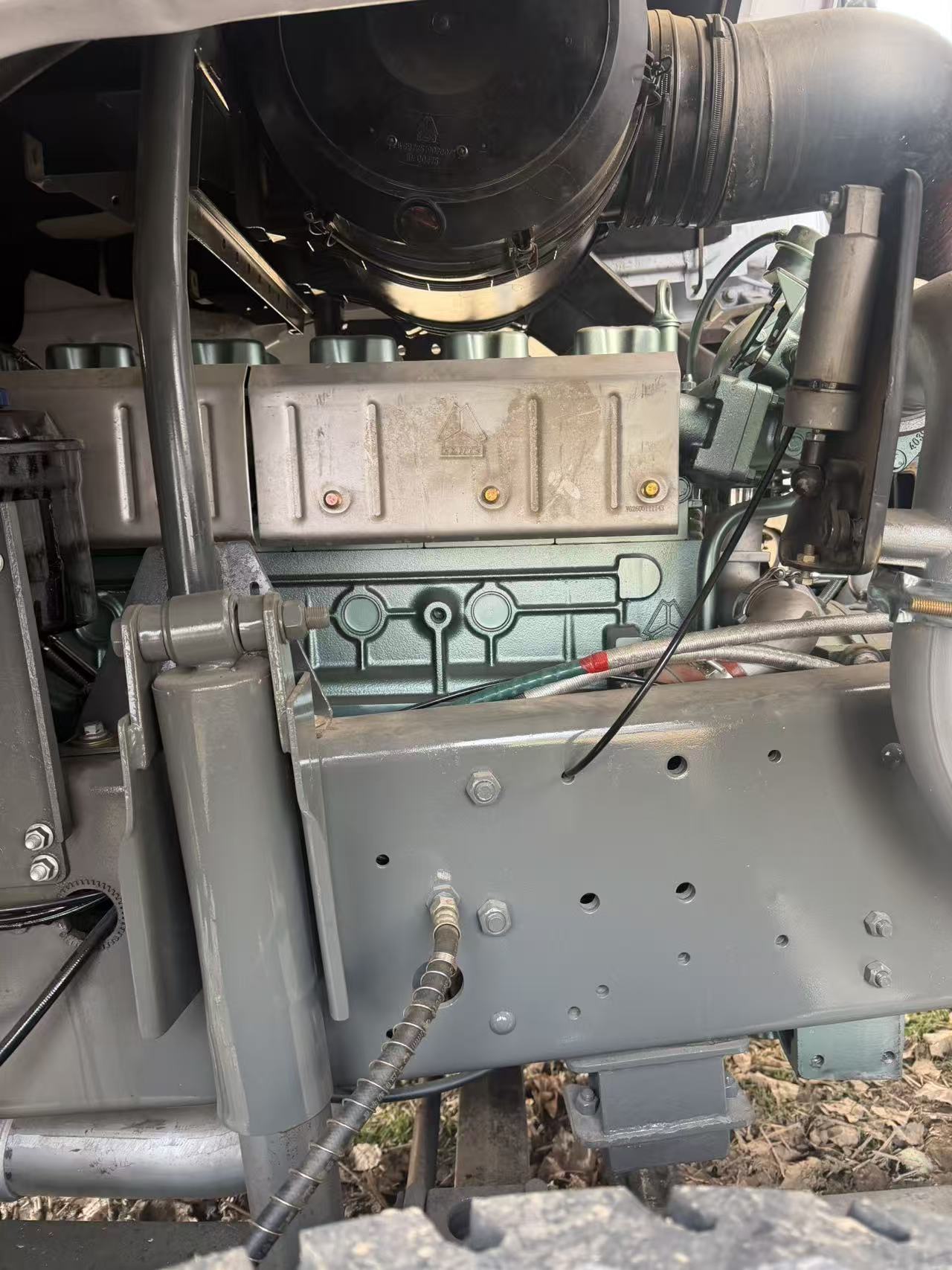 ◦ 格栅处的重汽三角LOGO是品牌核心视觉符号,该系列属于豪沃主力重型商用车产品线。